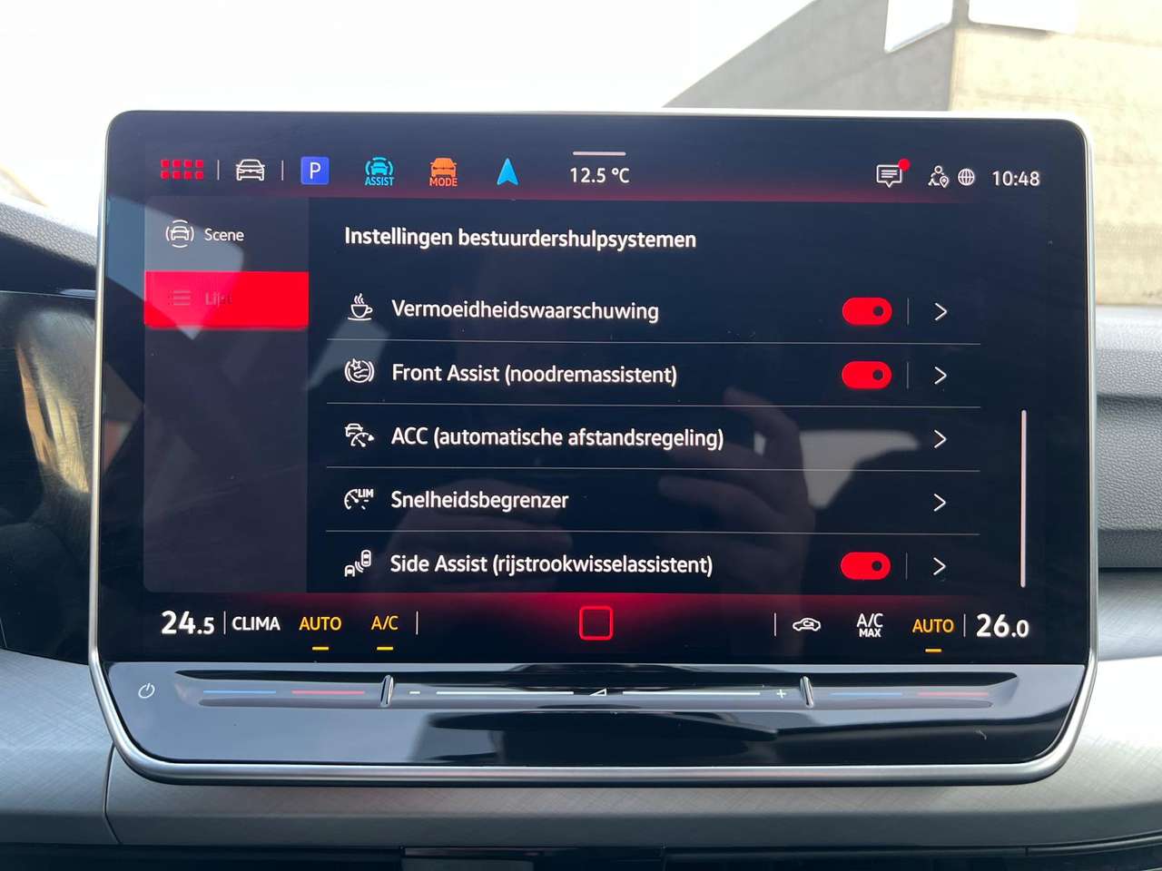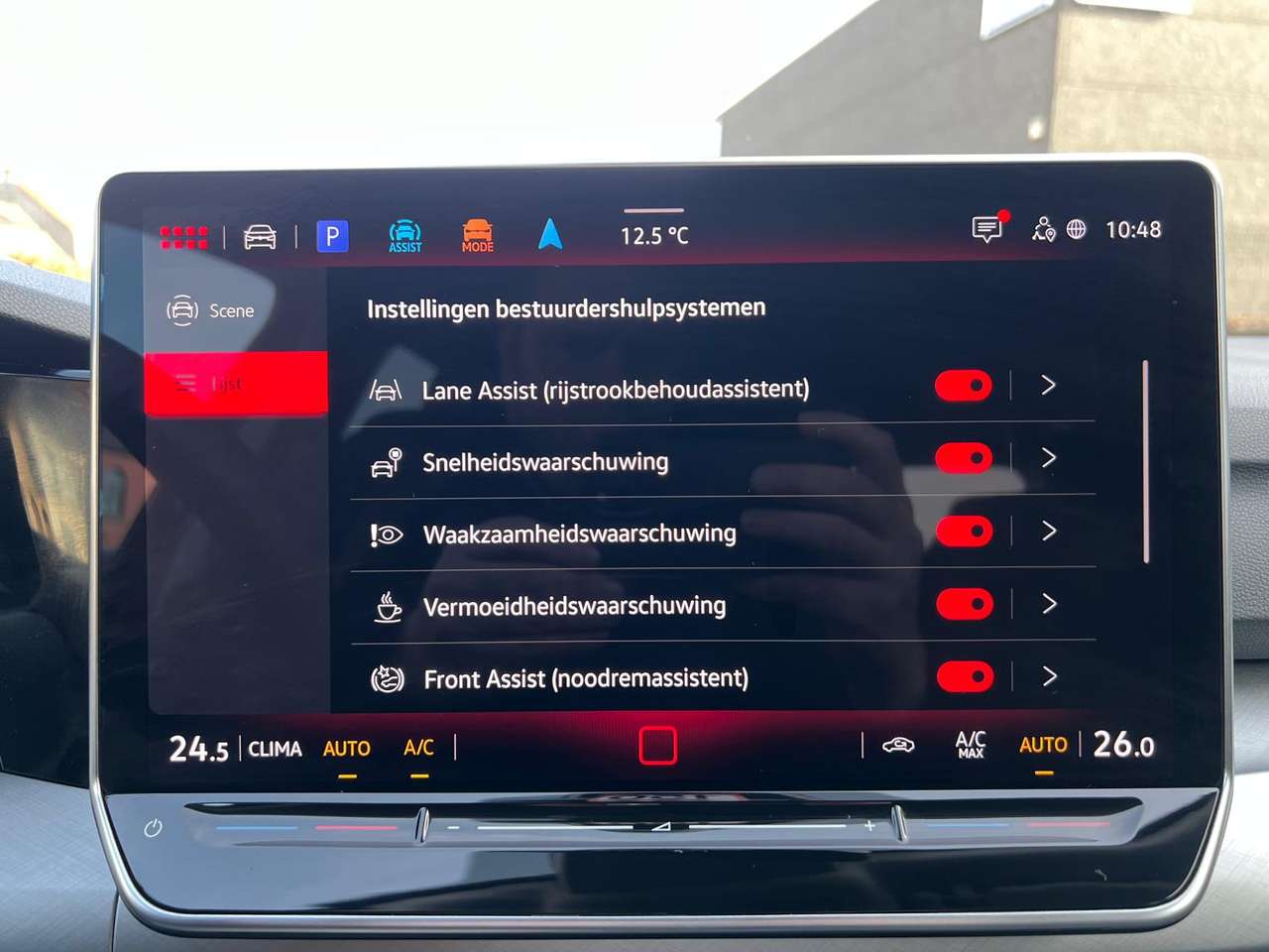 - Bestuurderondersteunende systemen: Adaptieve cruise control, dodehoekdetectie, lane departure warning, botswaarschuwing, automatische parkeerhulp met camera, vermoeidheidsdetectie, snelheidsbeperkingsinstallatie, verkeersbordherkenning
